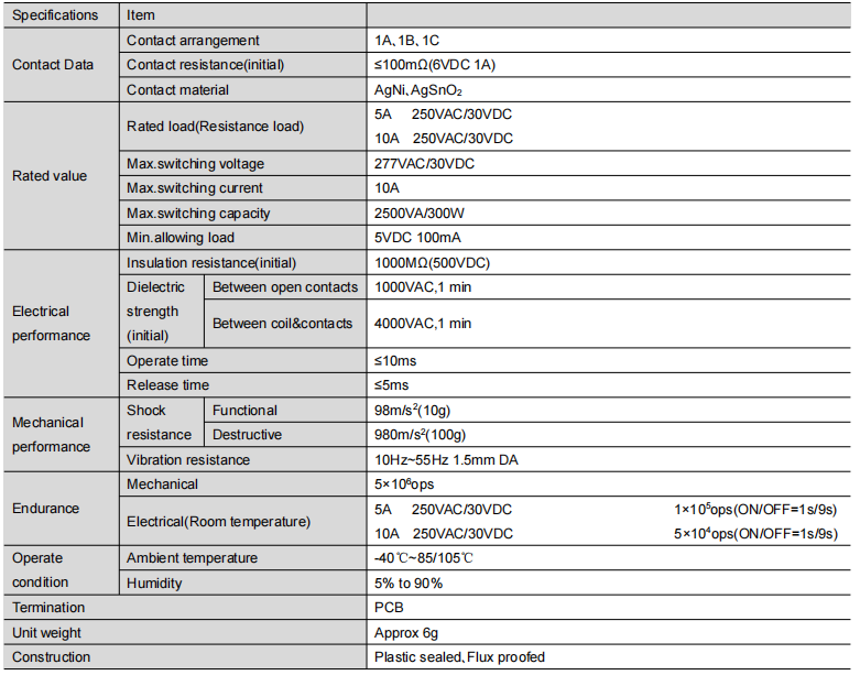 Elevated Switching Capacity: Accommodates 10A at 250VAC/30VDC loads with a peak switching power of 2500VA/300W.