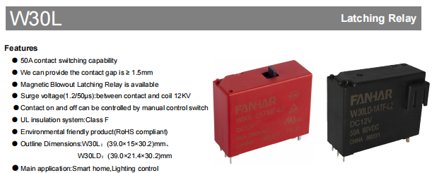 The use of permanent magnet force to maintain the contact state is its key feature. Only a pulse current is required to drive the coil during switching.The W30L/W30LD series represents a high-performance relay that employs magnetic latching (magnetic blowout) technology.The W30L/W30LD series represents a high-performance relay that employs magnetic latching (magnetic blowout) technology.In the current quest for enhanced efficiency, energy conservation, and intelligent regulation, relays, as essential elements for circuit switching, significantly influence the performance and dependability of complete systems.The W30L and W30LD series of Magnetic Latching Relays are precisely designed to meet the challenges of high-load, high-frequency, and long-life applications. Adhering strictly to the ISO9001 Quality Management System and ISO14001 Environmental Management System, these products, with their outstanding electrical performance, compact structure, and high environmental adaptability, have become the ideal choice for smart home systems, industrial control, new energy management, and other fields.