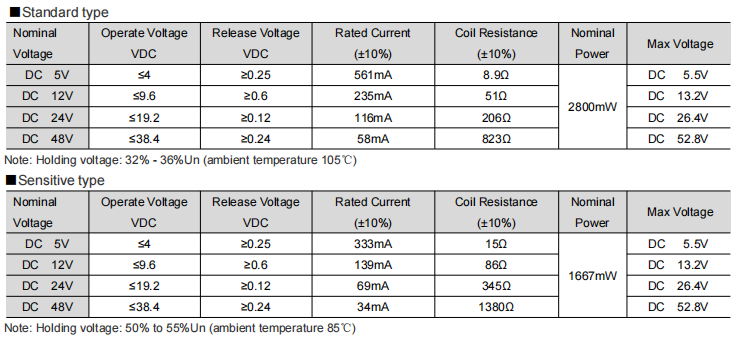 Coil Voltage: Specify required DC rated voltage (e.g., DC5V, 12V, 24V, 48V)
