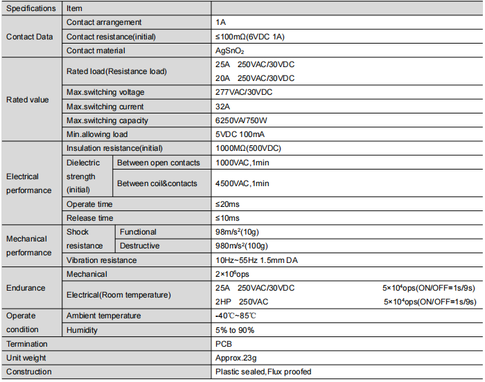Superior Load Capacity: Rated load 25A/250VAC/30VDC, maximum switching current up to 32A, meeting most industrial application requirements