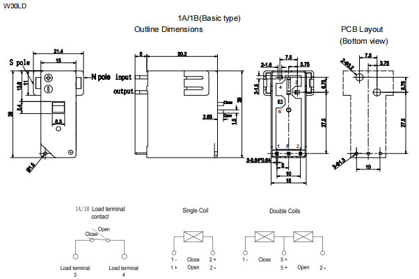 W30LD (DC Type): Offers two contact forms: 1A, 1B.