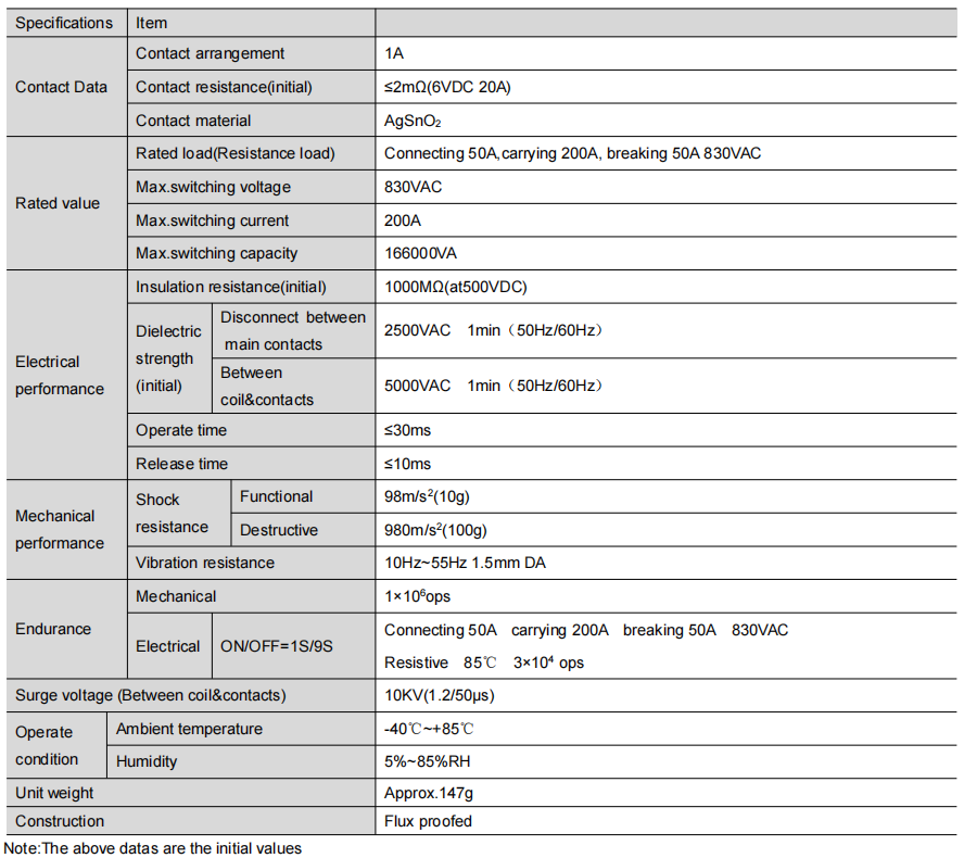 Powerful Current Handling Capability: Rated switching current up to 200A, maximum switching voltage 830VAC, with a switching capacity of 166 kVA. It can seamlessly manage high-power switching operations such as DC-side interruption and pre-charge circuit regulation in photovoltaic inverters.